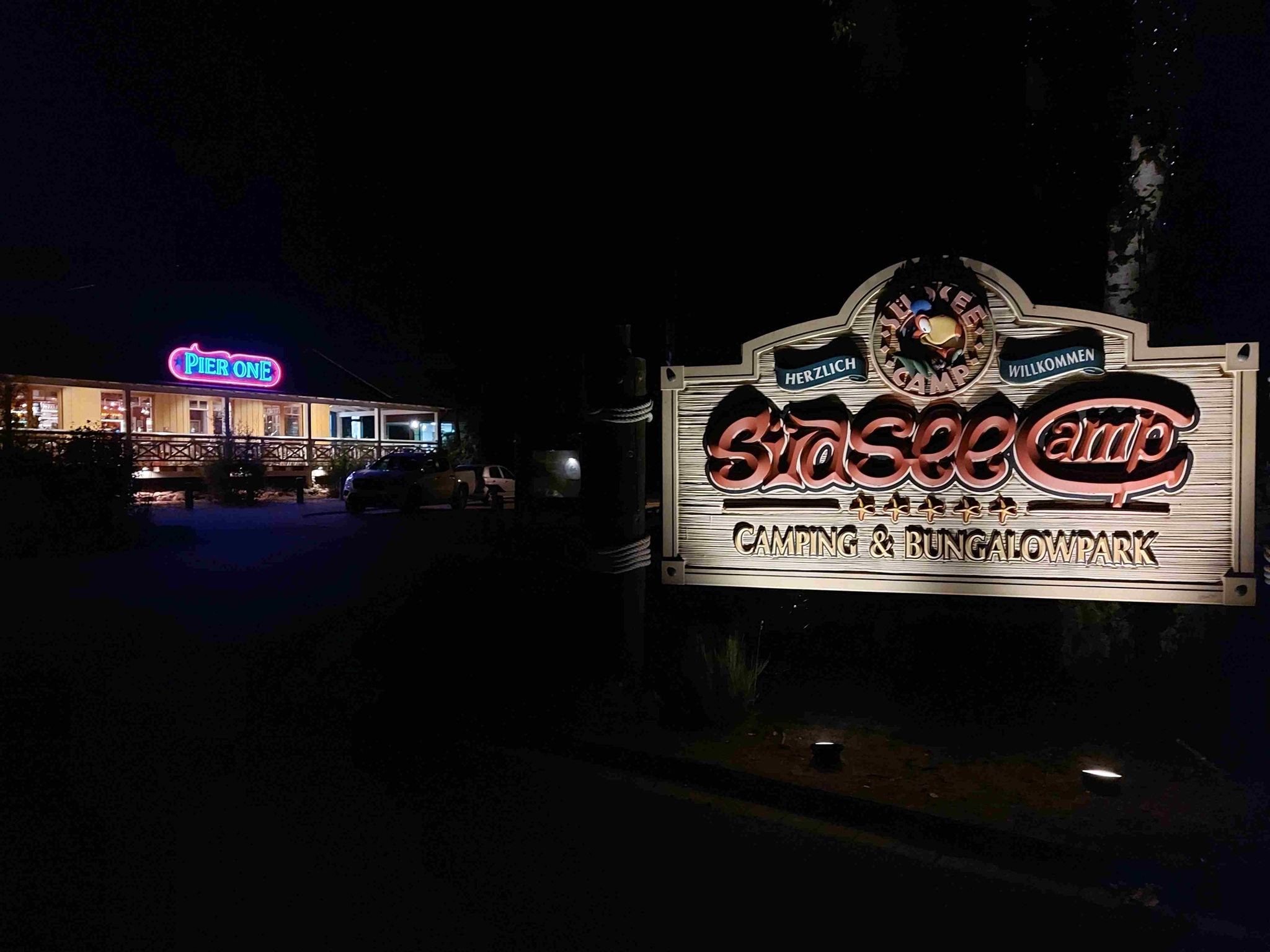 Wir haben uns entschieden schon am Freitag Abend loszufahren, um den Stau am Elbtunnel etwas zu umgehen, das hat auch ganz gut funktioniert. Wir kommen gegen 19:40 Uhr am Wohnmobilstellplatz vor dem Südsee Camp an und sind direkt begeistert: der Platz ist komplett ausgebucht!