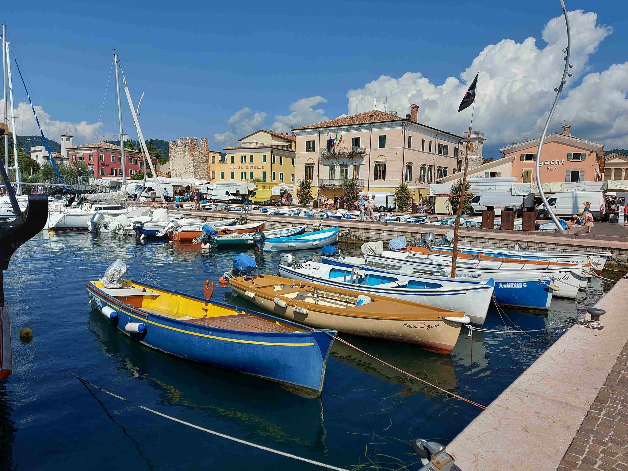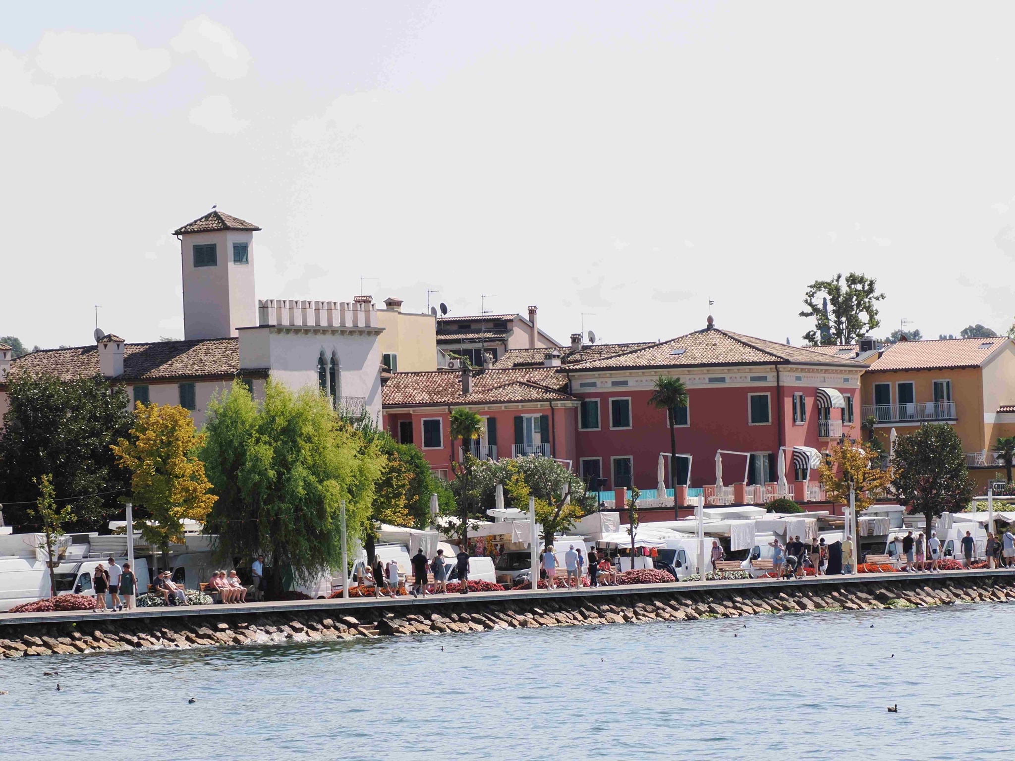 Da der Markt in Lazise wortwörtlich ins Wasser gefallen ist, wollen wir nach Bardolino. Das Wetter ist wieder wunderbar und die Sonne lächelt uns an. Um 11:40 Uhr fährt die nächste Fähre ab Lazise, die Tickets müssen noch ganz klassisch vor Ort am Schalter gekauft werden. Wir reihen uns in der Schlange ein, die bis zum kleinen Hafenbecken reicht, wir scheinen nicht die Einzigen mit der tollen Idee gewesen zu sein 😉 Nach etwa 15 Minuten Fahrt erreicht man Bardolino, der Markt ist direkt am Seeufer und somit auch vom Hafen perfekt zu erreichen. Es ist gigantisch voll und man wird nur so an den Ständen vorbei geschoben. Zum Mittag finden wir auf dem Marktplatz noch ein Restaurant mit einigen freien Tischen und super Essen. Für uns stand schnell fest, dass wir den Markt nicht weiter besuchen müssen und holen uns schonmal Karten für die Rückfahrt, wo es erst um 14:30 Uhr wieder freie Plätze gab.