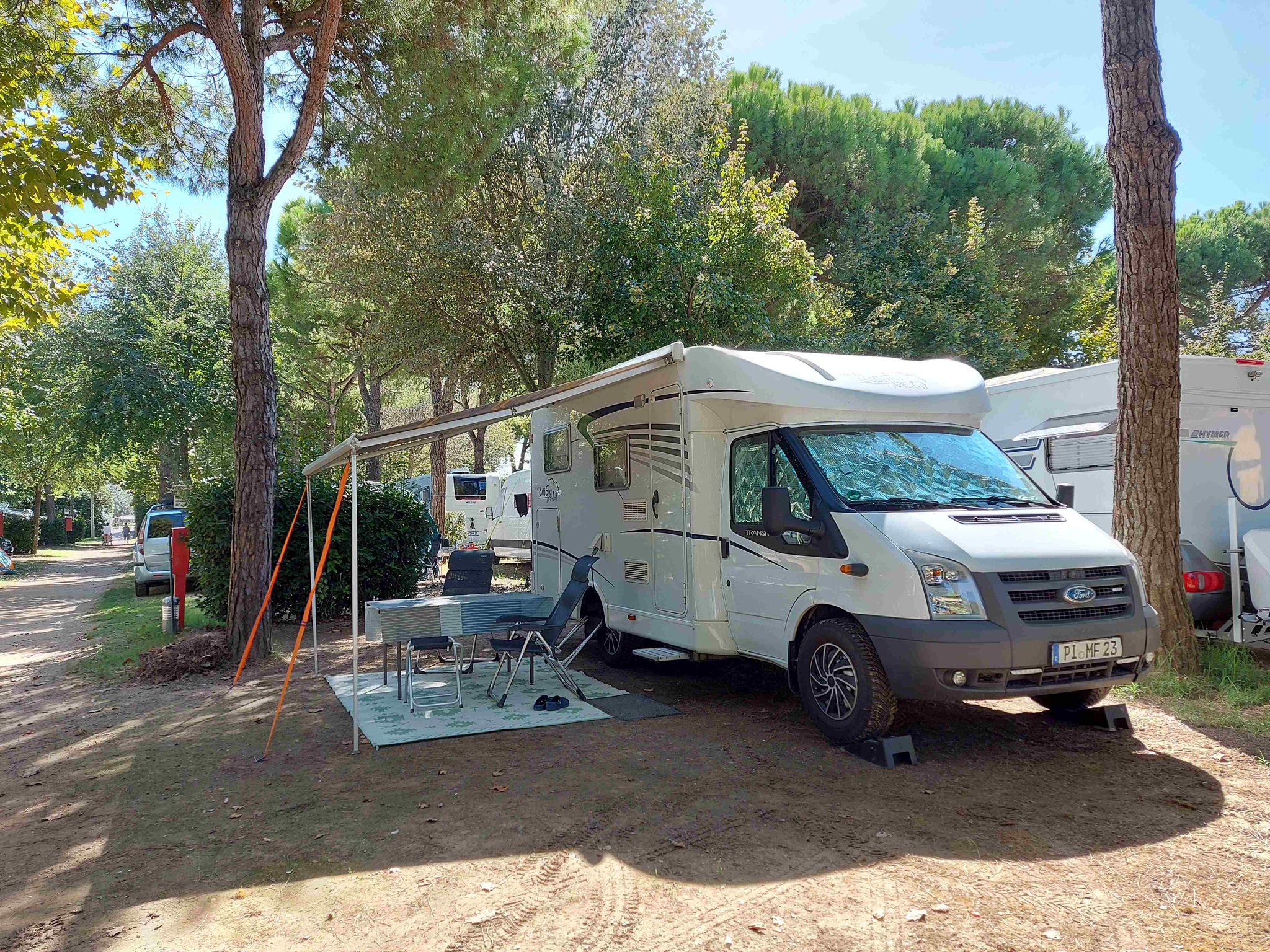 Der Check-In auf dem Campingplatz Union Lido ist sehr unkompliziert, alles wird direkt am Fahrzeug erledigt, man braucht nicht einmal auszusteigen. Nachdem uns der Platz zugewiesen wurde, müssen wir ihn nur noch finden, gar nicht so einfach bei der Platzgröße 😅