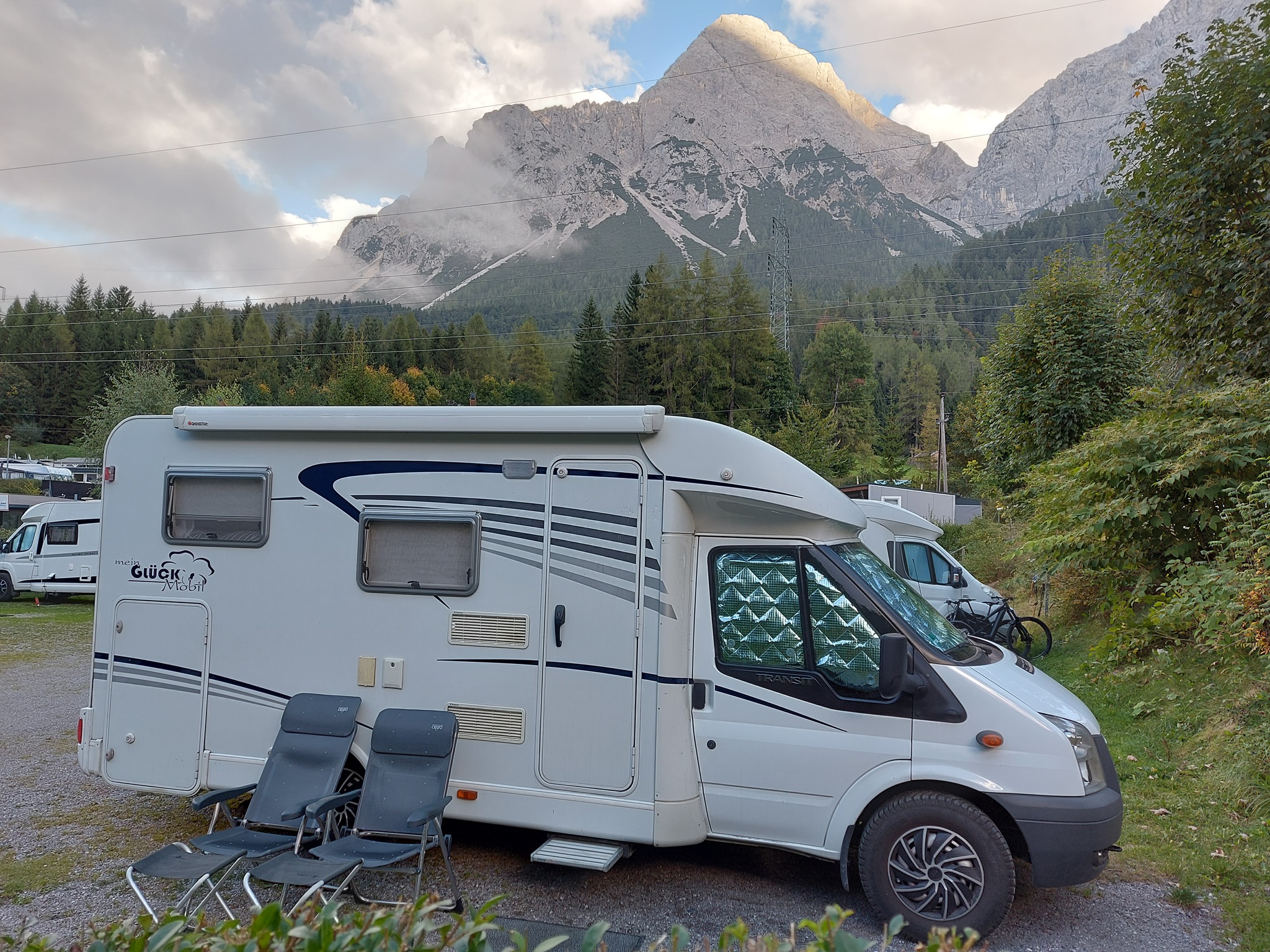 Gegen 15 Uhr erreichen wir den kleinen Ort Biberwier in der Nähe der Zugspitze auf der österreichischen Seite. Der Campingplatz Alpencamp Marienberg besitzt auch einen kleinen Wohnmobilstellplatz vor der Schranke, dort beziehen wir den Platz Nr. 12. Der Stellplatz kostet 25€, die Bezahlung ist an der Rezeption zu den normalen Öffnungszeiten vorzunehmen.