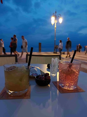 Auch einen kleinen Drink gönnen wir uns noch im Al Porto mit Blick auf den Gardasee. Ein Aperol liegt bei 7€ und für den Caipi haben wir 10€ bezahlt, nicht günstig aber für diese Lage angemessen.