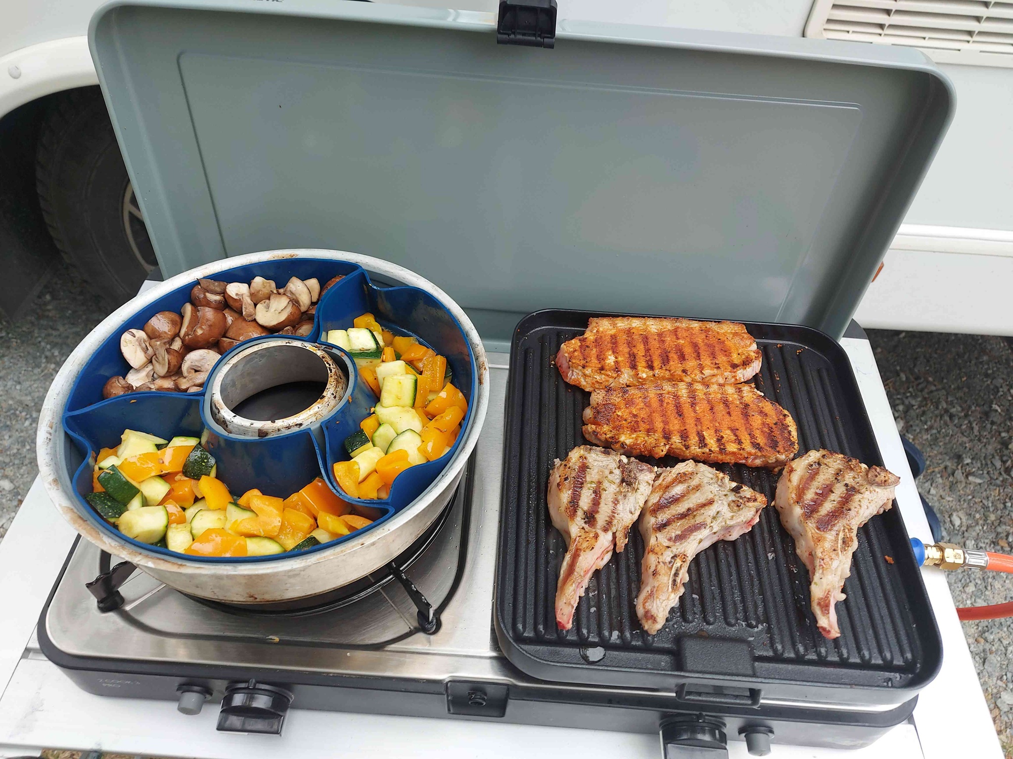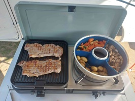 Und schon wieder ein CADAC Gerät, ein klassischer 2 Flammen Gaskocher den wir auch sehr häufig nutzen. Sehr praktisch sind die austauschbaren Platten, die super beschichtet sind und sich sehr gut reinigen lassen.