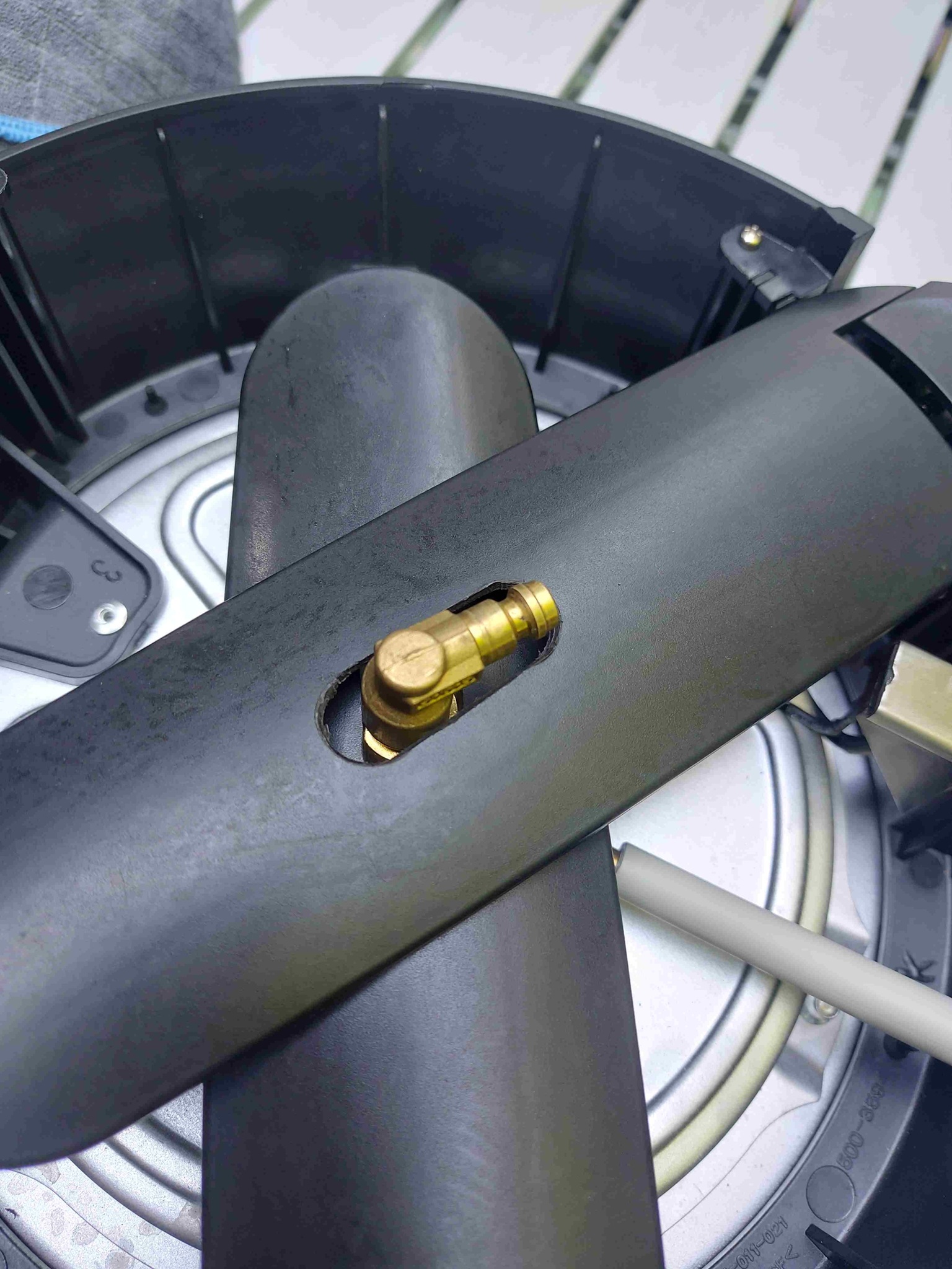 Die Beine hatte ich bei uns noch ein wenig bearbeitet, so dass die Gas Schnellkupplung dauerhaft montiert bleiben kann. Und auch hier ist die Gas Variante zu beachten, in Deutschland ist meistens nur die 50mBar Version erhältlich, bei dem großen holländischen Campinghändler gibt es auch die 30mBar Variante, das ist für uns wichtig, da wir die Geräte an der Gassteckdose betreiben und dadurch keinen eigenen Druckminderer nutzen.