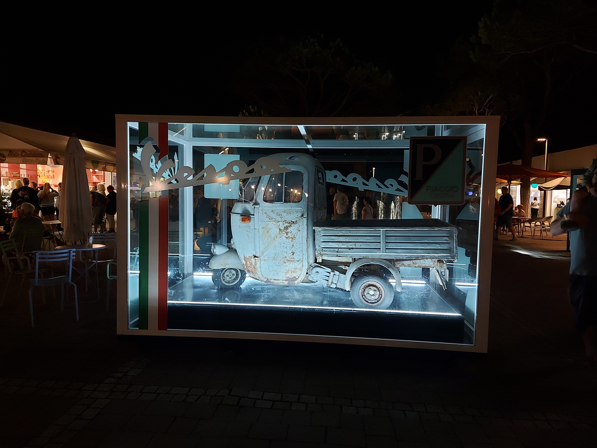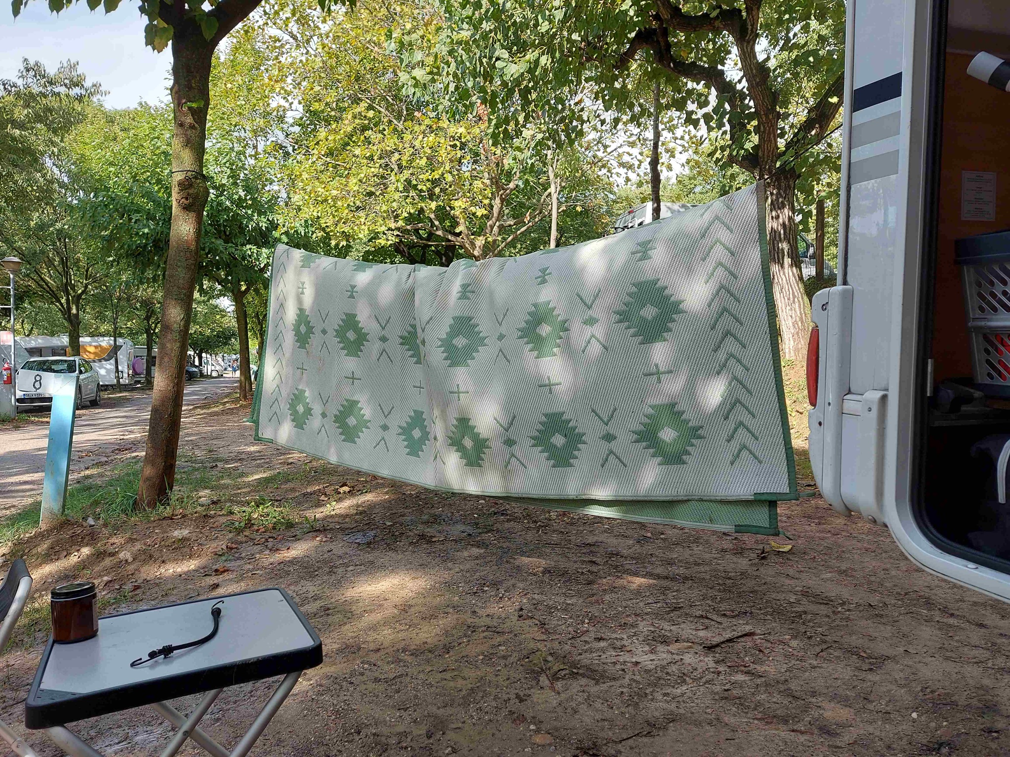 Also hängen wir etwa 1,5 Stunden Fahrt ran und landen, natürlich erst am Supermarkt 😂 Ein riesiger Iper Martinelli vor Lazise ist das Zwischenziel, hier decken wir uns für die nächsten Tage ordentlich mit Lebensmitteln ein. Exakt um 17 Uhr erreichen wir den Campingplatz Spiaggia d'Oro, direkt am Gardasee. Der Stellplatz "Via Napoli Nr. 8" ist ziemlich schräg und eher für kleinere Fahrzeuge gedacht, wir sind aber froh erstmal angekommen zu sein. Nachdem wir und schnell eingerichtet haben, sind wir in die Pizzaria am Platz gegangen und haben uns ordentlich gestärkt.