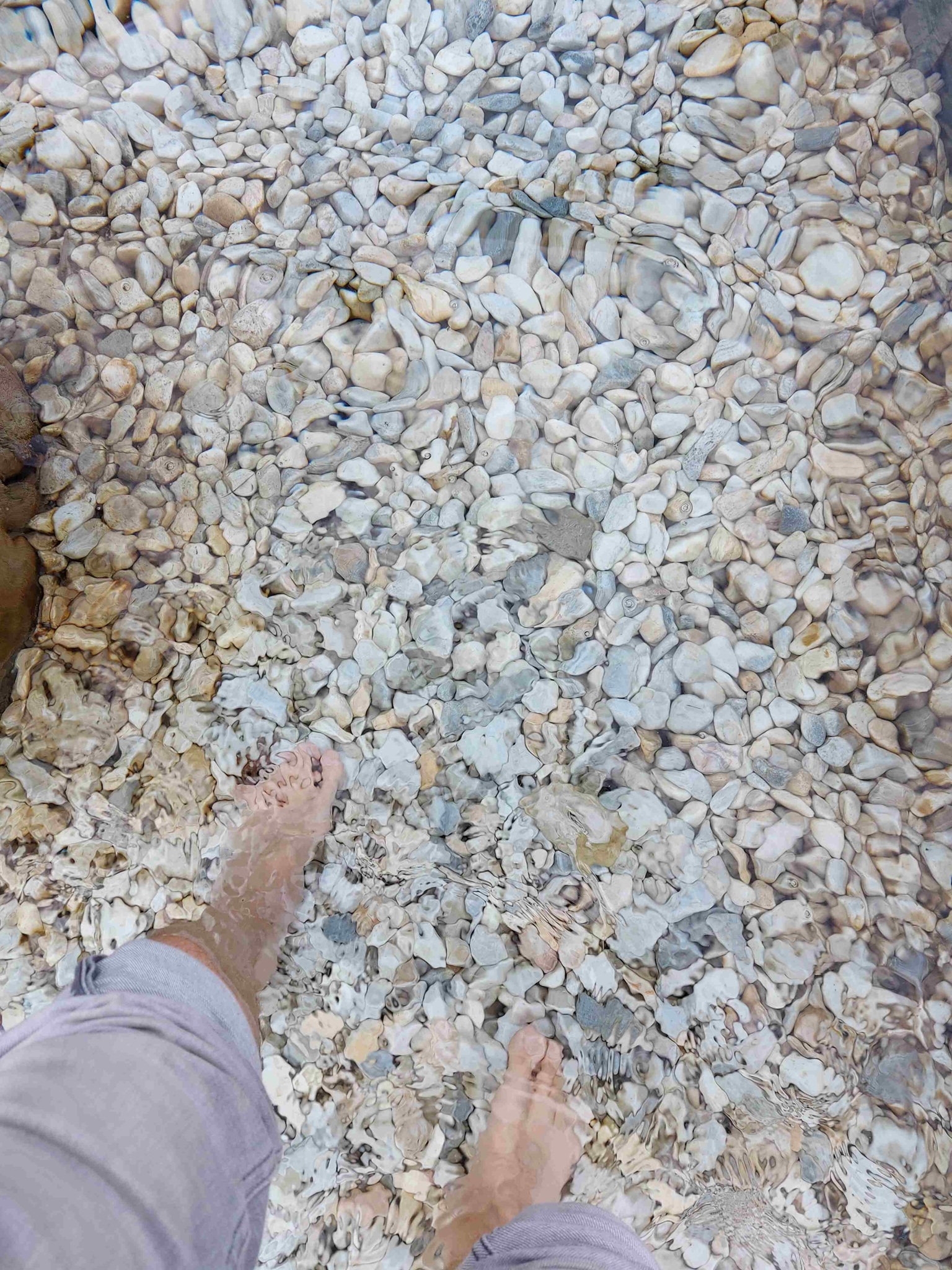 Der Tag startet mit klarem Himmel und der Blick auf die Berge ist frei. Es ist mit 9°C ziemlich frisch, da sind wir von den letzten Tagen anderes gewohnt 🥶 Trotzdem wagen wir uns noch in den Barfuss Park, der dem Campingplatz angeschlossen ist. Eine sehr interessante Erfahrung die uns genug Energie für die weitere Fahrt gibt, die können wir gut gebrauchen.