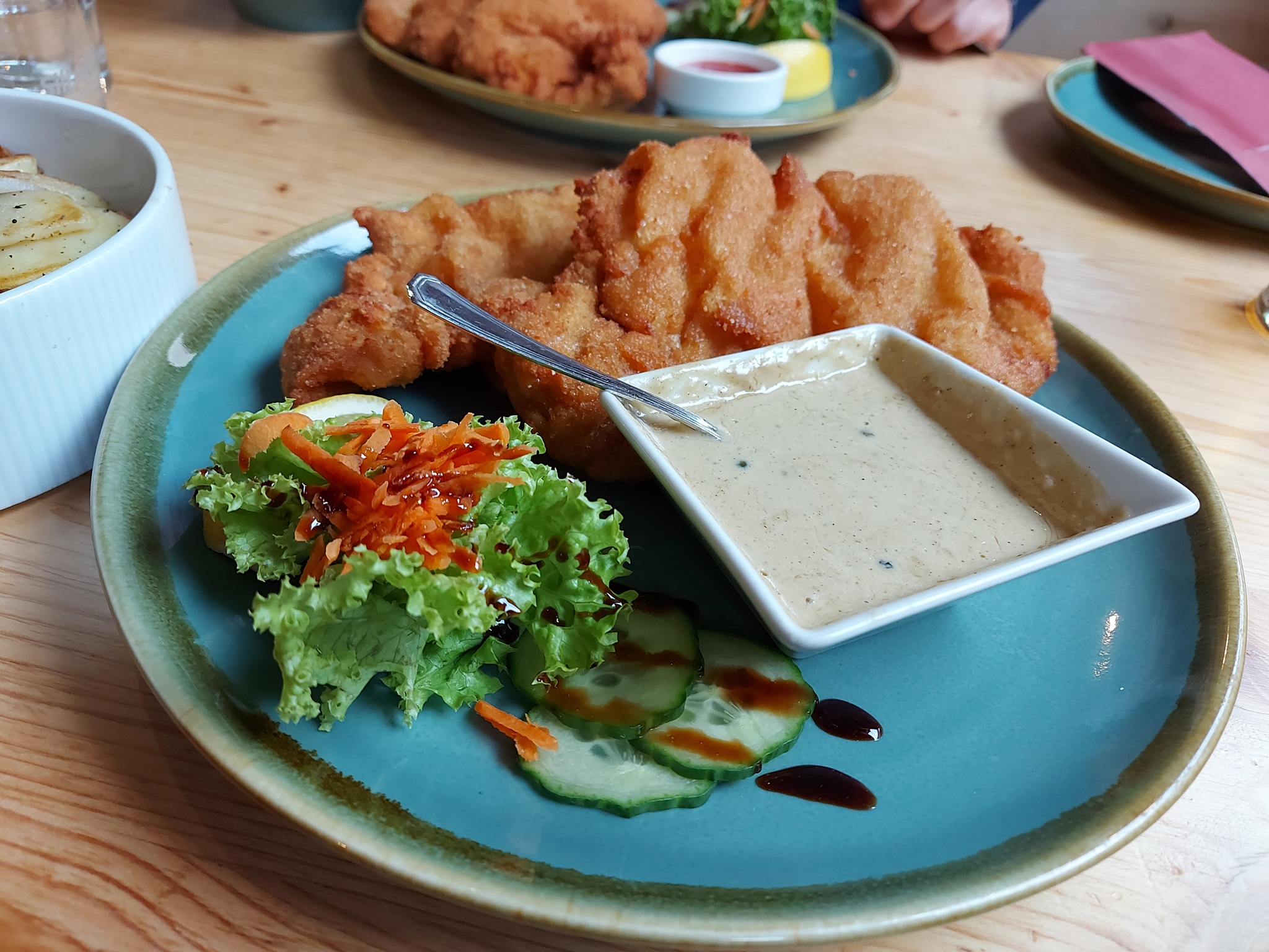 Das Essen war, na ja, sehr übersichtlich 😂 von der Qualität absolut super, aber die Portionen waren nichts für den großen Hunger. Mittlerweile regnet es und die Berge sind nicht mehr zu sehen, vielleicht klart es morgen früh noch ein wenig auf...