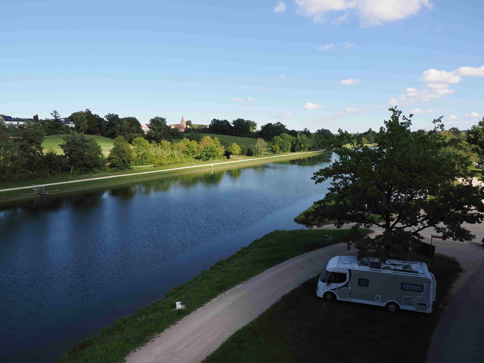 Heute wird gefahren, ungefähr 600 km liegen vor uns, es ist ja mittlerweile schon Tradition, dass wir wieder den schönen Stellplatz in Hilpoltstein direkt am Main-Donau Kanal ansteuern wollen. Wir entscheiden uns für die Route über die A14 und A9 über Magdeburg und später Richtung Nürnberg. Mit nur einem kleinen Stau kommen wir super durch und sind schon nach etwa 6 Stunden am Ziel angekommen. Das Wetter ist den ganzen Tag traumhaft bei 22°C, was sich auch bei der Fülle auf dem Platz bemerkbar macht, es ist wahnsinnig voll.