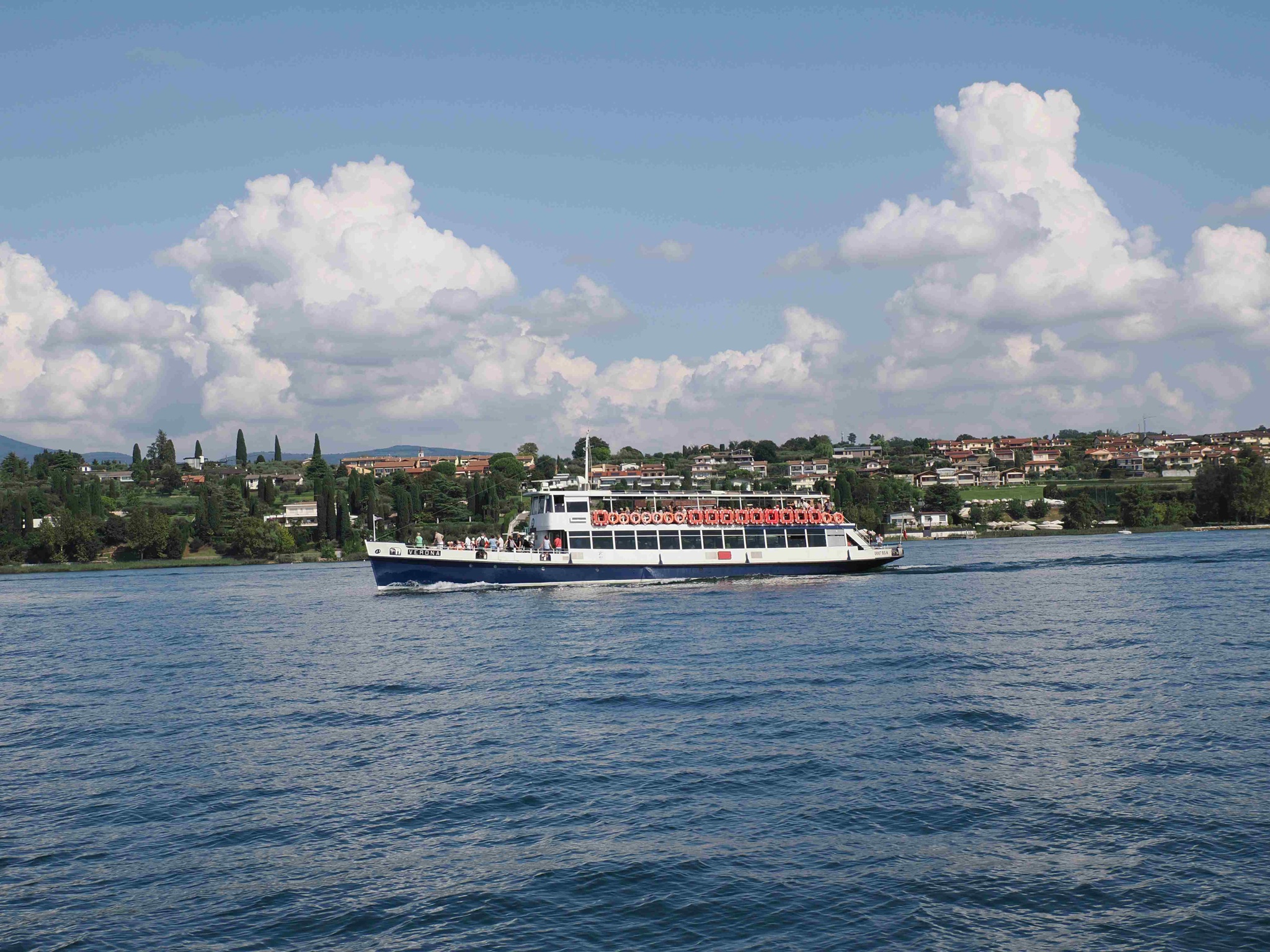 Da der Markt in Lazise wortwörtlich ins Wasser gefallen ist, wollen wir nach Bardolino. Das Wetter ist wieder wunderbar und die Sonne lächelt uns an. Um 11:40 Uhr fährt die nächste Fähre ab Lazise, die Tickets müssen noch ganz klassisch vor Ort am Schalter gekauft werden. Wir reihen uns in der Schlange ein, die bis zum kleinen Hafenbecken reicht, wir scheinen nicht die Einzigen mit der tollen Idee gewesen zu sein 😉 Nach etwa 15 Minuten Fahrt erreicht man Bardolino, der Markt ist direkt am Seeufer und somit auch vom Hafen perfekt zu erreichen. Es ist gigantisch voll und man wird nur so an den Ständen vorbei geschoben. Zum Mittag finden wir auf dem Marktplatz noch ein Restaurant mit einigen freien Tischen und super Essen. Für uns stand schnell fest, dass wir den Markt nicht weiter besuchen müssen und holen uns schonmal Karten für die Rückfahrt, wo es erst um 14:30 Uhr wieder freie Plätze gab.