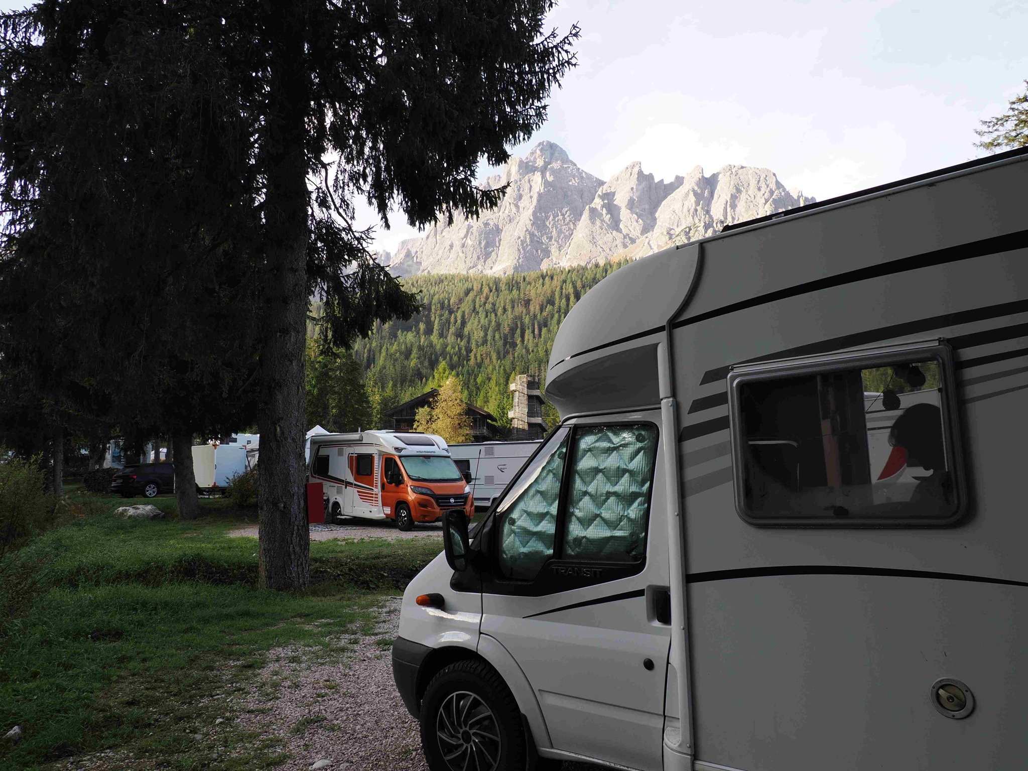Das Auschecken auf Union Lido verlief vergleichsweise chaotisch da es ziemlich voll war und die Parkplätze recht begrenzt sind. Irgendwann haben wir es geschafft und wir halten nach etwa einer Stunde Fahrt noch in einem Conad Supermarkt an, um unsere Vorräte wieder aufzufüllen. Mittlerweile ist es auch wieder komplett bewölkt aber immer noch trocken. Nach ungefähr vier Stunden kommen wir am Ziel, dem Caravanpark Sexten, an. Die Anlage ist ziemlich groß und scheinbar auch wieder gut gebucht, ein Glück haben wir vorher noch reserviert.