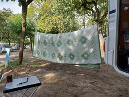 Wir haben den Platz ja schon recht häufig angefahren, aber so voll haben wir ihn noch nie erlebt. Die komplette Wiese war vollgeparkt mit Wohnmobilien in allen Größen, Formen und Farben. Positiv zu erwähnen ist allerdings, dass der Platz immer noch 7€ die Nacht kostet, unverändert seit unserem ersten Besuch vor etwa 10 Jahren.