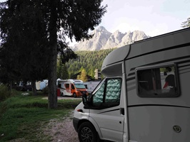 Am nächsten Tag fahren wir so langsam wieder Richtung Norden, wir haben uns noch einen Stellplatz in den Dolomiten ausgesucht, das Wetter ist für heute nicht so gut angesagt, wir hoffen aber dass wir noch einigermassen trocken in die Berge kommen.