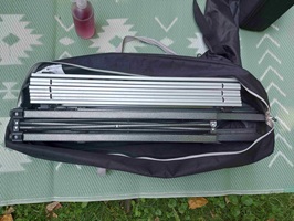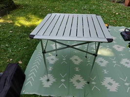 wir haben schon eingige Tische durch probiert, was die Platzverhältnisse angeht, waren die Rolltische immer weit vorne, einfach zu verstauen und keine große Tischplatte die irgendwo hingeschoben werden muß. Leider war die Qualität der Rolltische selten gut genug, nachdem wir den letzten Tisch fachgerecht entsorgt haben, kam der King Camp in die engere Auswahl, mit einer angeblichen Belastaberkeit von 80 kg ist der den Vorgängern weit voraus.