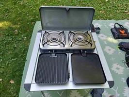 Und schon wieder ein CADAC Gerät, ein klassischer 2 Flammen Gaskocher den wir auch sehr häufig nutzen. Sehr praktisch sind die austauschbaren Platten, die super beschichtet sind und sich sehr gut reinigen lassen.