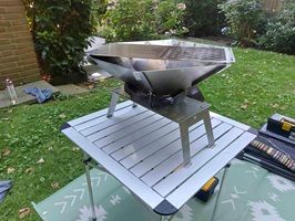 Auf Grund der Fülle auf den Stell- und Campingplätzen kommt die Feuerschale leider immer weniger zum Einsatz, das Prinzip ist aber wirklich super, aus wenigen Edelstahl Teilen kann eine vollständige Feuerschale mit Sockel und Grillrost zusammengebaut werden, durch die Rauchentwicklung nutzen wir sie aber meist im Herbst oder Winter wenn die Plätze entsprechend leerer geworden sind.